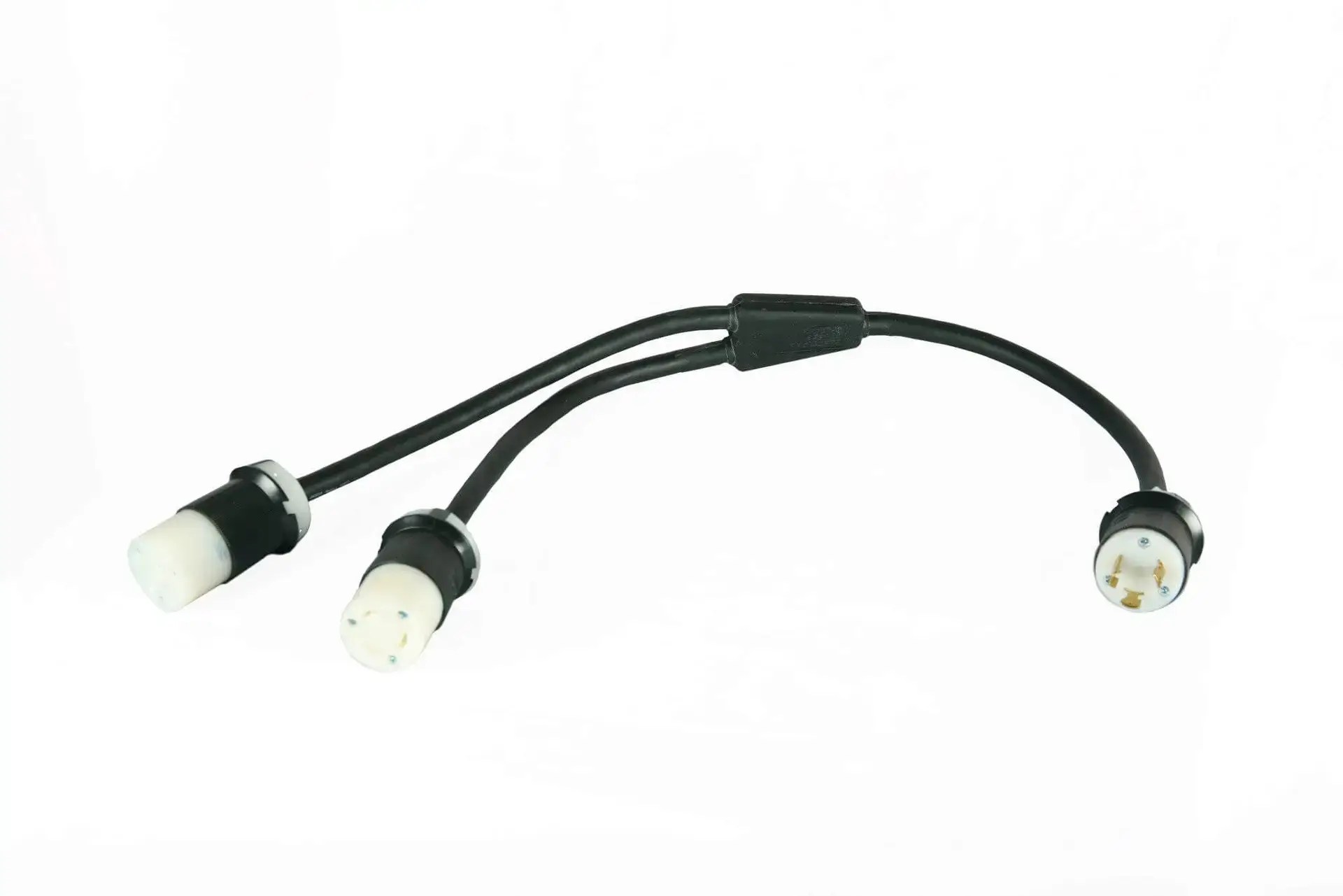 12/3 SOOW molded 2FER 3’ long with a HBL2621 (NEMA L6-30 30A 250V) Plug to (2) HBL2623 (NEMA L6-30 30A 250V Connectors.