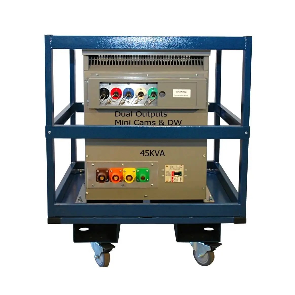 Complete assembly will be mounted on a powder-coated crash cart with casters and crash bars that also have fork lift tubes
